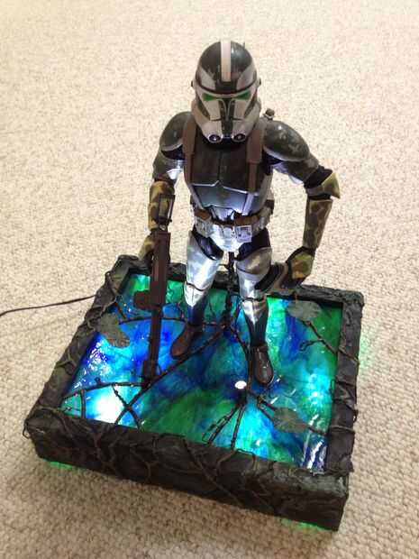 Luego pinté-primero con aerógrafo utilizando negra plano, luego amarillento y oscurezca verde oscuro. Luego lo había detallado con dos diferentes tonos ligeros de verde.