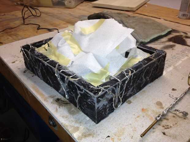 Luego tomó mi dremmel y "raíces" y áreas ásperas en el marco de la tierra. Cuando quería una raíz metálica a emerger, perforé un agujero pequeño en el marco teniendo cuidado de no para puch a través de él. Entonces había derretido caliente mis raíces de metal a la estructura. Raíces aún más, tomé la pistola de cola caliente y creado algunos más y también algunas áreas de grumos como si para mostrar el crecimiento del follaje.