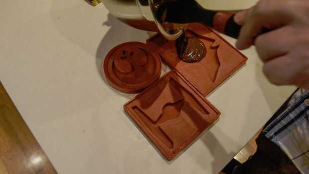 Utilizan una técnica de doble recipiente para fundir el chocolate y verterlo en el molde.