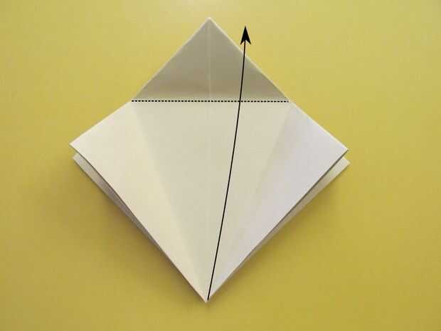 Los 3 pliegues que hemos hecho en los pasos anteriores nos ayudará a hacer el pétalo doble. Levante la parte inferior y doblar a lo largo de las líneas de pliegue y aplanar para formar un triángulo.