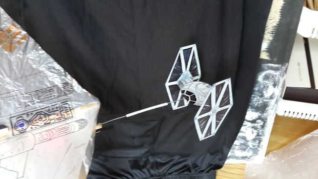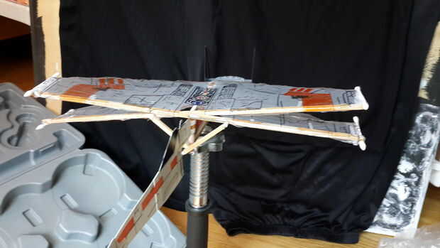 -pewpewpew (he añadido un tubo de papel verde en el cable para que se vea como el TIE Fighter es disparar láser en el X-Wing)
