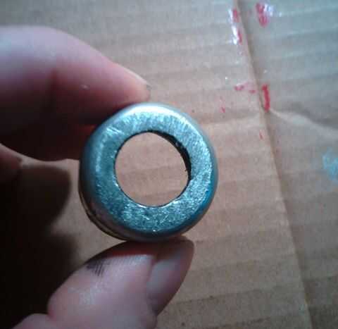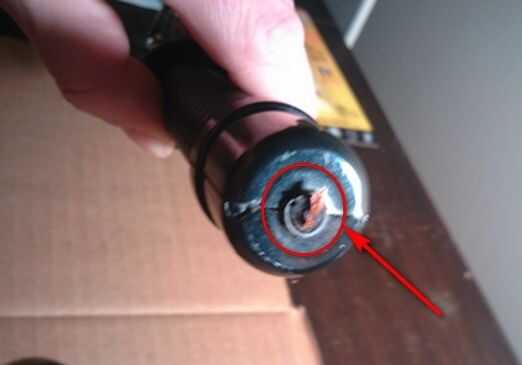 Sacar el cable de soporte y que le mantenga y los dos pasadores. Saque los dos tornillos que sujetan el mango juntos y descubre que no viene aparte. El anillo de configuración cortado con una sierra pequeña y ponga a un lado. Corte el cable y usar el dremel con una broca de corte para todo uso para "cerdo" el área dentro del círculo rojo. Ahora la punta se desprenderá. Ponga a un lado.