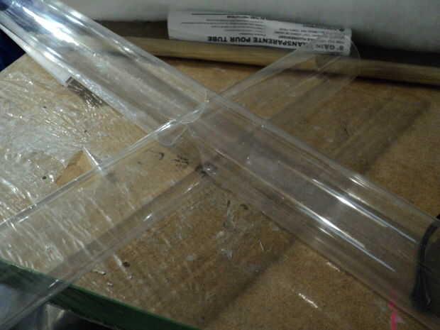 Ahora a cortar el tubo de plástico. Puesto que el sable de luz es una espada larga, la duración es alrededor de 4 1/2 pies. La empuñadura es de 22 pulgadas de ancho.
