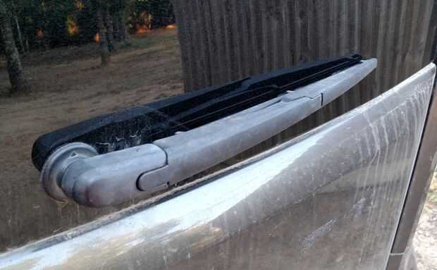 Retire la tapa de brazo de pivote del brazo del limpiaparabrisas trasero. En la mayoría de los casos esto sólo se recorta en su lugar.