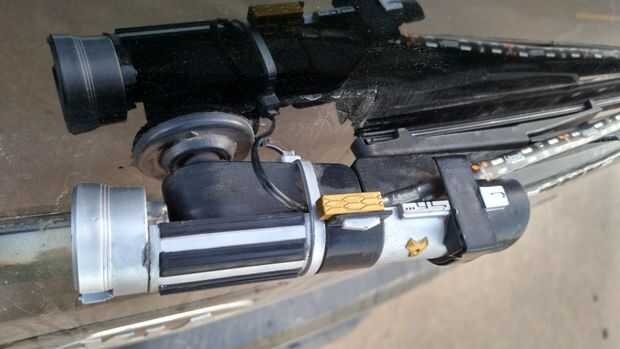 - Coloque el mango del sable de luz sobre el final de la Asamblea de limpiador. Línea hasta ver lo mejor.