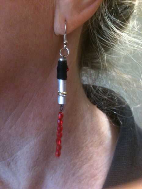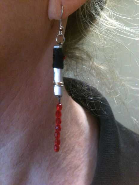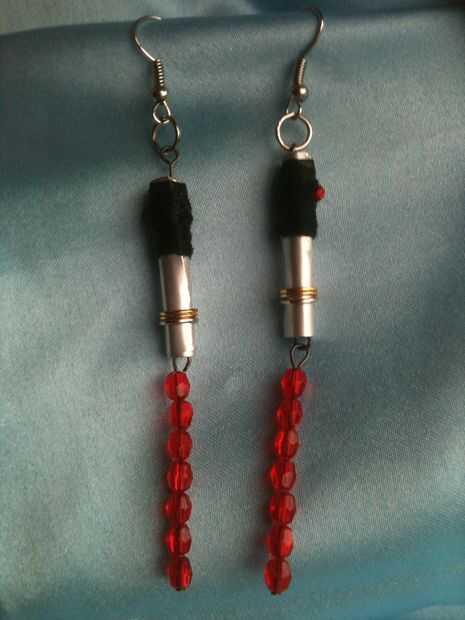 solo lo que siempre has querido - espadas de luz para tus oídos! Se hacen estos pendientes poco fácil de fornituras, abalorios y un trozo de aluminio (también conocido como el lado de una lata de gaseosa!). Fácilmente puede personalizar el aspecto cambiando el color de los granos utilizados para la hoja y botón o agregar diversos resultados de joyas hasta el cuello para hacer cualquier tipo de sable de luz que desee. Fui con un Darth Vader inspirado look sobre todo porque tenía los granos perfecta por parte de la hoja - un Luke Skywalker inspirado conjunto voluntad probablemente ser junto a ellos pronto una vez que sólo los granos bien ;)