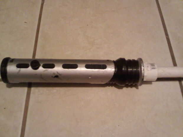 después de que han puesto el tubo de 1/2 pulgadas PVC en el mango del sable de luz, stand up y dejar solo por 3 hrs. el epoxi adhiere todo y una vez hecho el núcleo no manojo de un centímetro. después de que en cualquier piscina de color fideos quiere y bam, listo