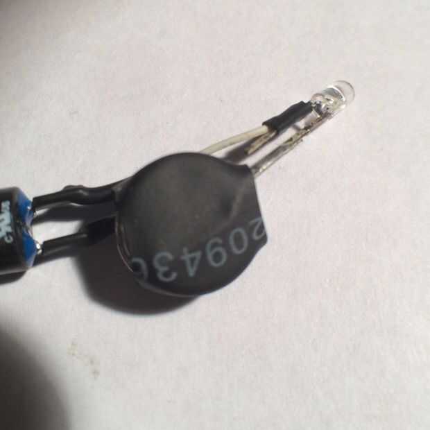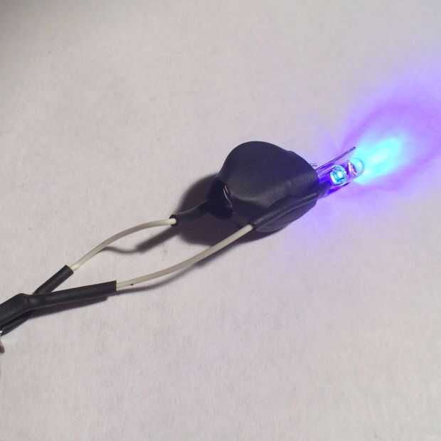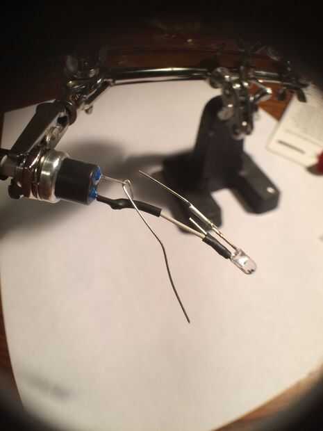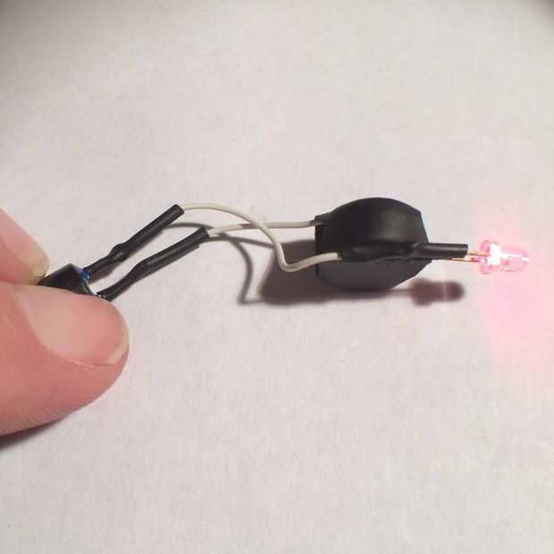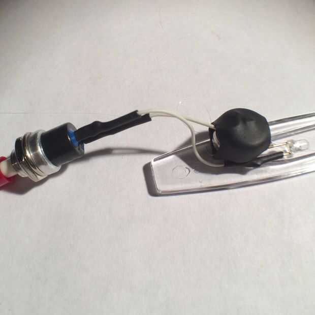 Primero había conectado un cable en el botón y usa algunos de encogimiento de calor para fijar las soldaduras. A continuación os adjunto el botón a uno de los conductores del led usando calor retráctil para asegurar las soldaduras. Una vez asegurado que puse dos de las pilas dentro de una pieza de encogimiento de calor. Entonces coloqué el plomo unsoldered de lo LED en las baterías y el cable suelto el botón del otro lado. Asegúrese de que usted prueba de que lado van los cables en. El LED no funcionará si las polaridades no coinciden. Entonces calienta el encogimiento del calor para mantener los cables en contacto.
