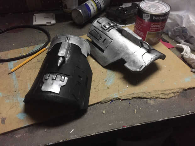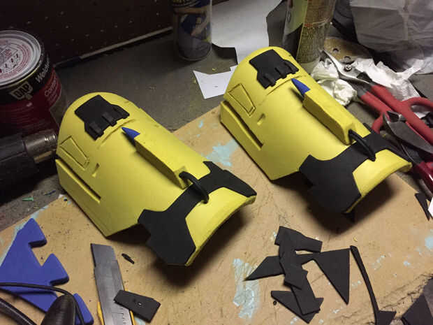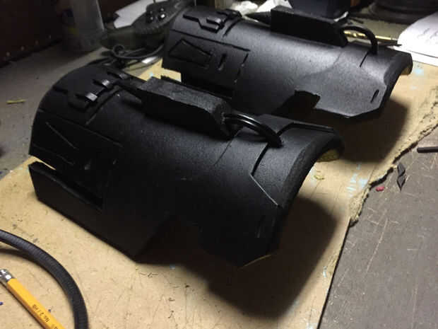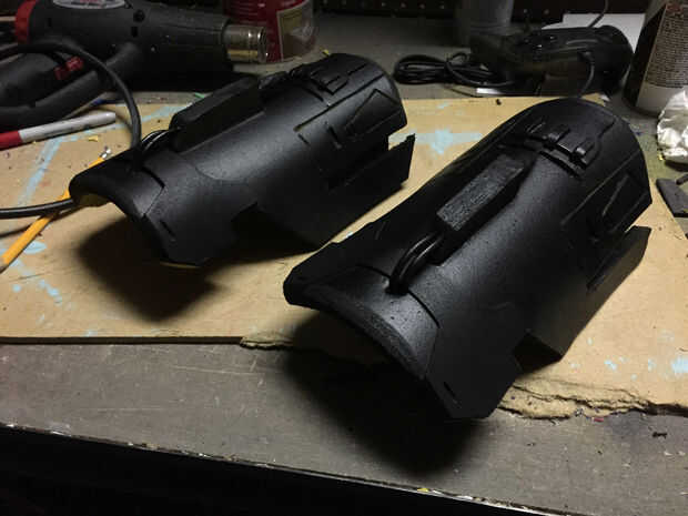 Usar el mismo viejo proceso, uso de capas para construir cosas y que forma poco de espuma para los puntos en la cima de los guanteletes. También, cuando haya terminado el resto de los detalles, agregando algunos cables cerca del frente realmente se ve tan bien.