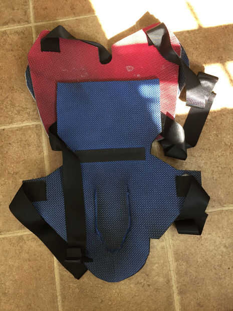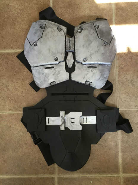 Decidí cruzar las correas a través de mi espalda y adjuntar a las cuatro esquinas de la pieza del pecho y también poner una cinta alrededor de mi cintura. Estas bien fijación con pegamento caliente en un lado y a una hebilla de liberación rápida en el otro. Esto me da la libertad para ajustar la tensión de cada una de las correas para asegurarse de que tengo un ajuste ceñido.