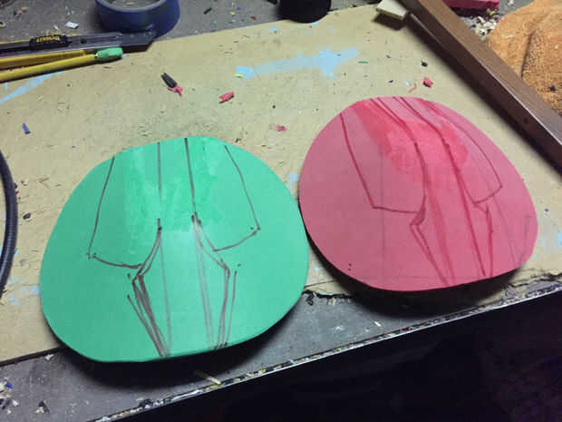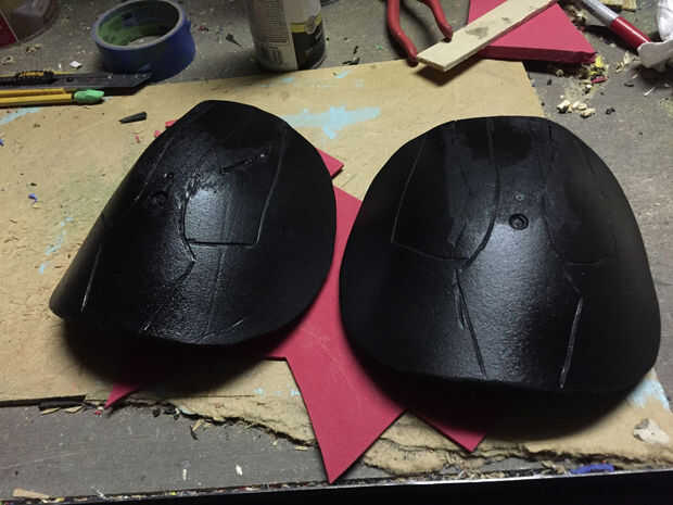 Como los codos, los pedazos del hombro fueron bastante sencillos. Lo único malo es que es un poco difícil tener una idea de cómo darle dimensión a la espuma. Algunas personas la espuma en el horno de calor y luego presione en un recipiente. En cambio, he arrugado pedazo de papel en mi hombro y utiliza como un patrón áspero.