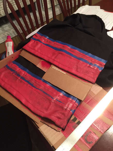 Cepillado en algunas marca Tulip "true red" pintura de tela. Por desgracia, era demasiado rosa para mi gusto. Una vez que estaba seco, solía una tulipán marca tela roja la pintura de aerosol, para oscurecer las cosas para arriba.