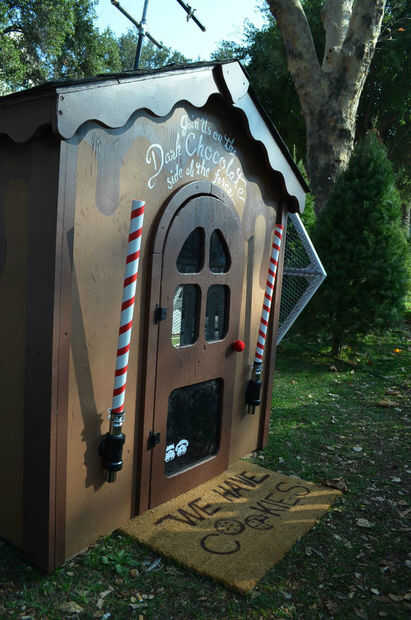 Había diseñado y construido los elementos externos de esta casita con un equipo de Orchard Supply Hardware. Esta es nuestra entrada en una divertida competencia con otras empresas locales, recaudar fondos para hábitat para la humanidad. Se celebra anualmente en "Navidad en el parque" San Jose California. El año pasado creamos una miniatura OSH almacenar Playhouse con grandes decoraciones de caramelo en otro Instructable.