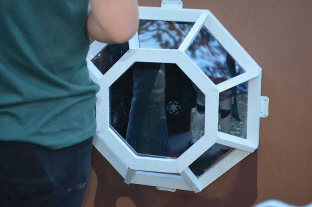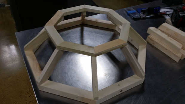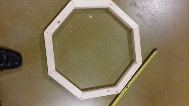 Como las alas, hice cortes en ángulo y había burlado por. Los ángulos son básicamente 360 dividido por 8 = 45 dividido por 2 o 22.5 grados. La ventana de abrir el kit Playhouse era 18" de alto por 12" así que hice el diámetro 18". Si tuviera que rehacer esto, habría hecho más grande en proporciones. Inicialmente busqué Octagonal vidrio superior mesas (de 70) podía adaptar. En cambio, quería tener esa forma Facetada así que corte un octágono más pequeñas con pedazos de madera en los ángulos del octágono mayor. Utilicé la madera de hobby más pequeños para hacer más visible la ventana. La desventaja fue que era más madera y más difícil de uñas a través de. Esto requiere más tiempo de pulir algunas cabezas de clavos y orificios de llenado. Después de fue montado, me lijado y pintado. Cortar las piezas de plexiglás (del acrílico) y me había pegado con adhesivo de Lexanol (bueno para varios materiales incluyendo los plásticos). Para cortar el plástico, marcar con un cuchillo y encaje en el borde de una mesa. Al construir el marco, trate de pensar de cómo se montan el plexiglás, pasé mucho tiempo montaje de piezas ya que las superficies no planas al vidrio. También les pegan debajo de la estructura que crea una hendidura para la lluvia y las hojas para recoger. Para acoplarlo a la pared, yo jodido L cuatro soportes en el bastidor. Aplique sellador de pegamento antes de atornillar a la pared.