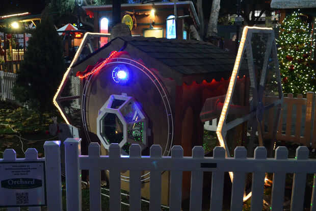 He montado luces de la cuerda a las alas con ataduras y había enmascarado la cuerda donde entró en la casa a la franja de las powerr. También pienso montar un proyector laser luz interior que proyecta hacia fuera las ventanas. También he añadido luces de la cuerda roja bajo el alero del tejado. .