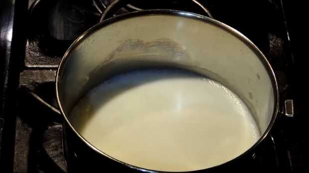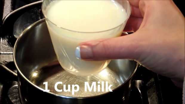 Añadir 1 taza de leche en una cacerola pequeña y el calor a fuego medio-bajo hasta hervir a fuego lento.