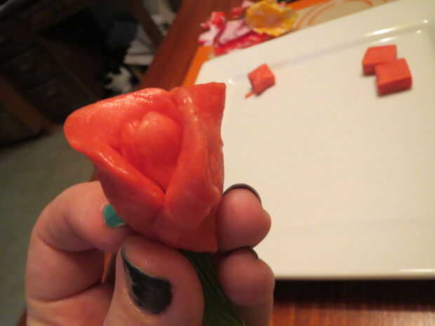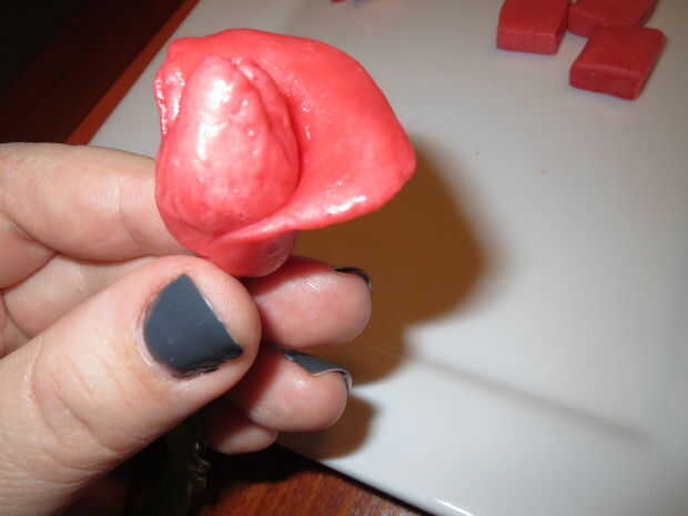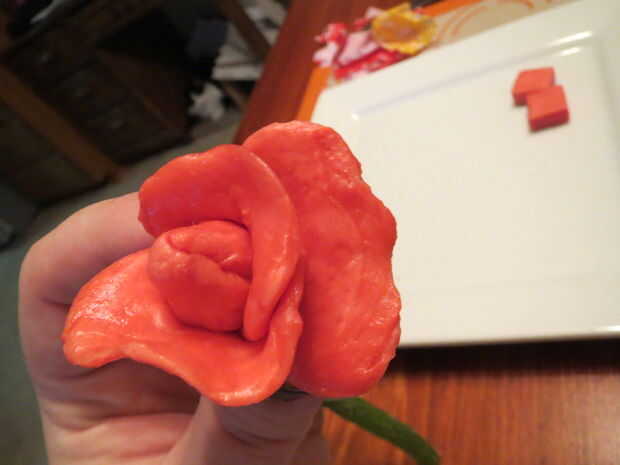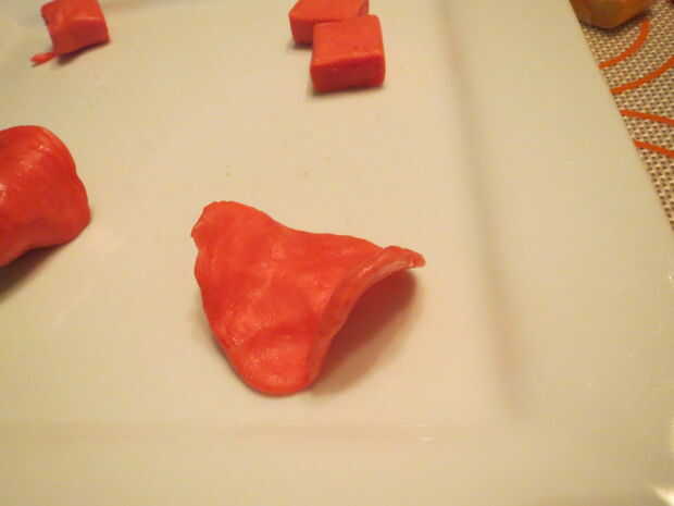 Tomar cada pieza de starburst y trabajar con los dedos. Usted puede hacer estos pétalos parece una patata frita o un cuadrado con bordes redondeados - siempre y cuando se aplanan. Comience envolviendo cada pétalo alrededor de la yema una por una. No intente hacer su arreglo simétrico. En este punto, no dude en concertar los pétalos un poco para hacer la floración aparecen más abiertos.
