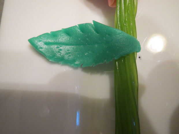 Puede aplicar estas hojas por un extremo largo alrededor del tallo de la rosa.