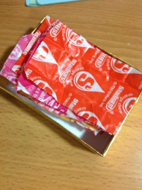 en el último día de clases mis amigos y yo estábamos comiendo Starbursts y pensé que los contenedores podrían utilizarse para algo. Le dije a mis amigos para tratar de no rasgar las envolturas cuando les quitó el caramelo. Después de la escuela tenía