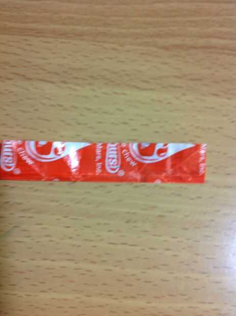 usted puede hacer fácilmente una cadena de contenedores starburst o goma de mascar. Estoy usando envolturas starburst desde hoy comí algunos, pero goma envolturas trabajo igual de bien.Acabo de hacer una cadena de un paquete de destellos, pero si tie