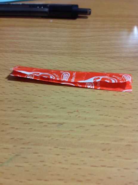se necesita candy wrappers. Envolturas de Starburst son el tamaño perfecto, igual que ahora y más tardías envolturas. Necesita mucho si usted quiere hacer una larga cadena.Paso 1: Doblar la envoltura por la mitadPaso 2: Doblar por la mitad otra vezPa