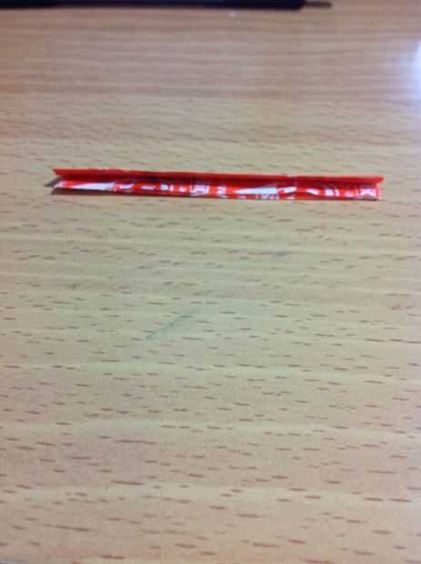 Doble los dos extremos largos juntos para obtener una tira delgada. Sujete firmemente el contenedor porque podría deslizar y se alinean.