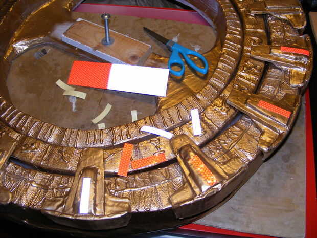Pegamento caliente en las comillas angulares en su posición. Espacio de las comillas 9 angulares uniformemente alrededor del perímetro.