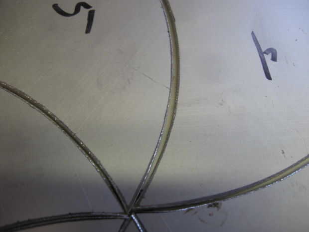 Una vez que estés satisfecho con el ajuste, fije las hojas exteriores para el interno como se muestra, usando el pegamento.