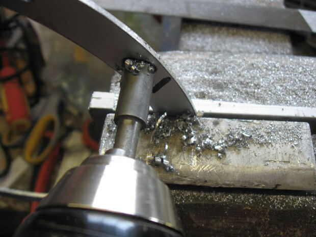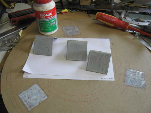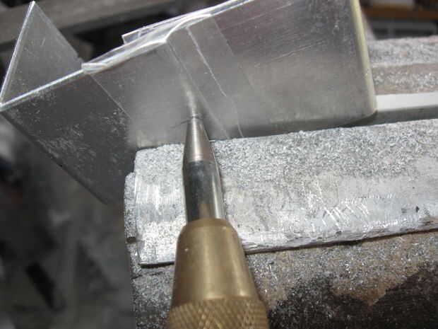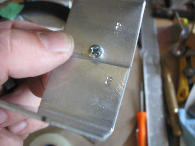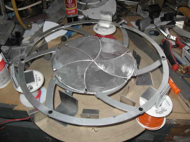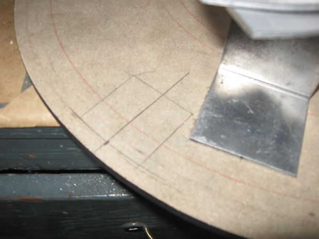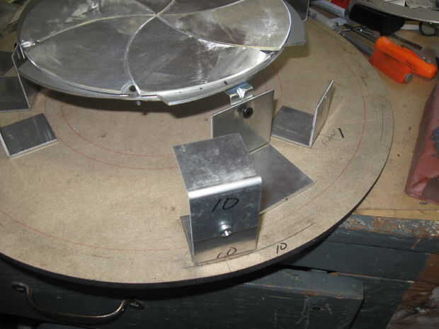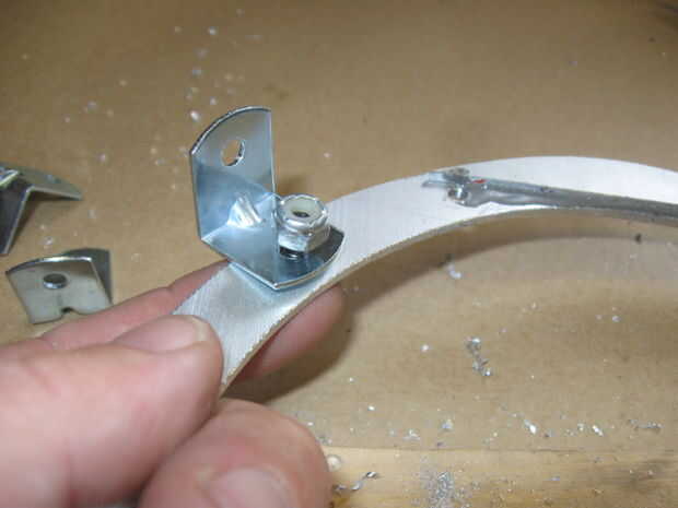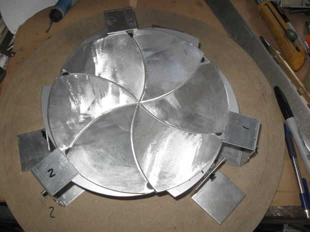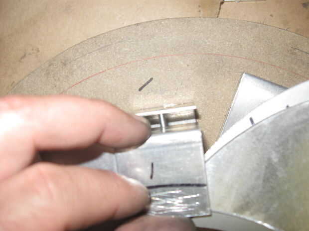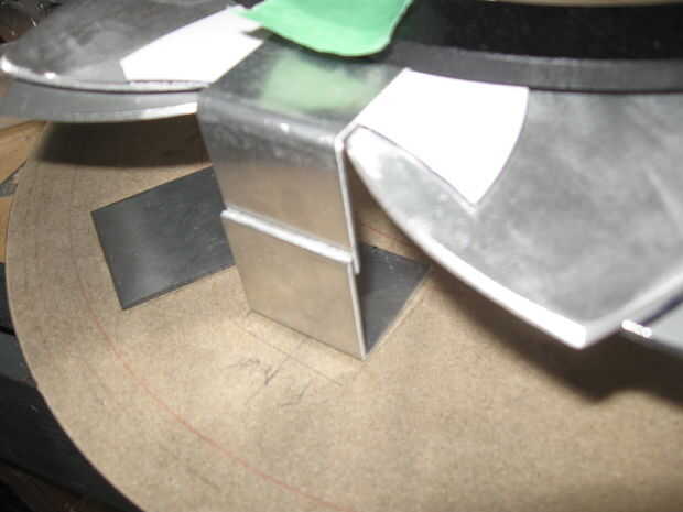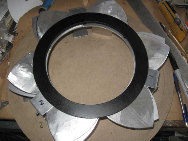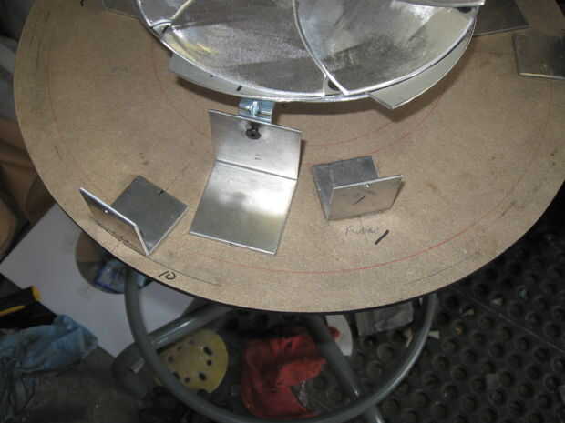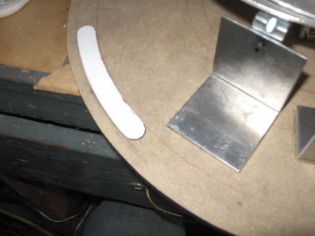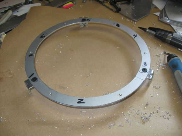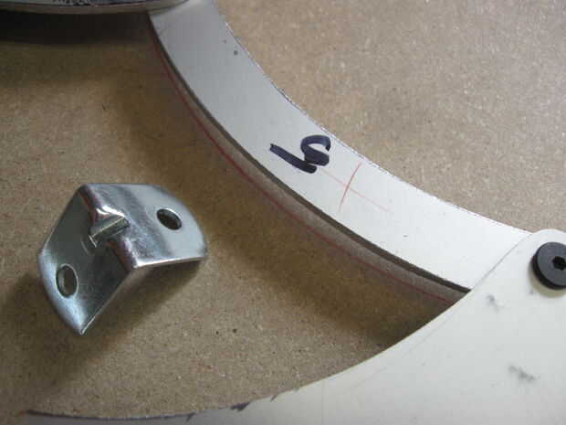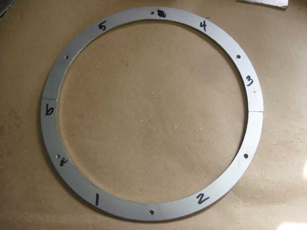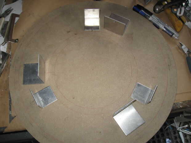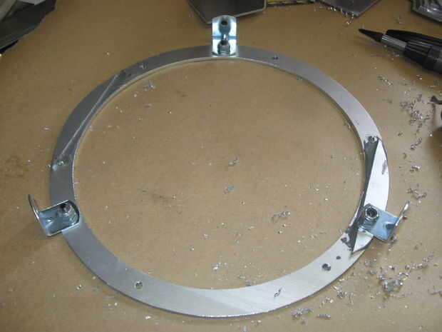 Los soportes de aluminio fueron marcados perforados y golpeado ligeramente luego finalmente pegados al círculo de tablero duro.