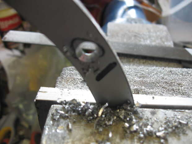Finalmente los soportes se pegan para apoyar y guiar el anillo de control externo. Como muestra estas van hasta el borde exterior del anillo de control, el control de armas no se sujeta a las hojas de todavía. otra vez elegir una posición que no interfiera con el movimiento mecánico.