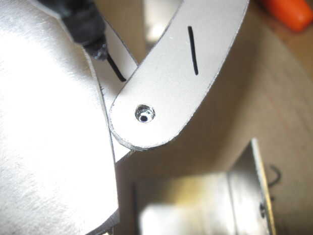 Con todas las piezas en su lugar, marque el accesorio del brazo de control para las hojas.