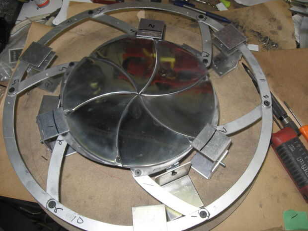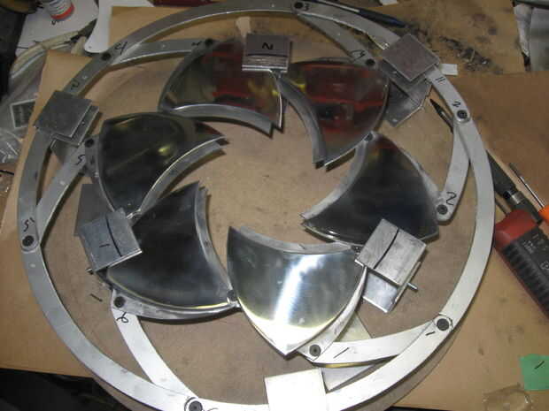 Pulir las hojas de metal y ensamblar las partes internas de trabajo. El polaco es una ardua tarea con una Dremel y compuesto para pulir. Final del espejo es ideal pero muchas horas. Pruebe el funcionamiento antes del montaje final.