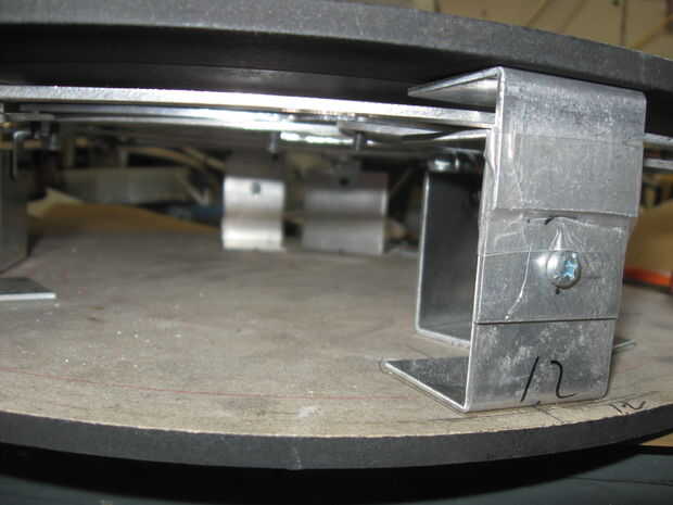 3 soportes adicionales son necesarios para apoyar el aro exterior de cosmético y el anillo de control de la guía. éstos se sujetan a los soportes del anillo de control con un tornillo desde el interior del diafragma como se muestra.