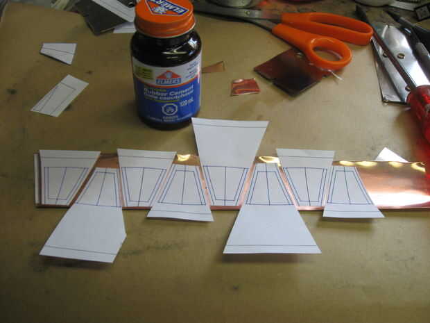 Se cortaron los pedazos individuales de aluminio y hoja de cobre.