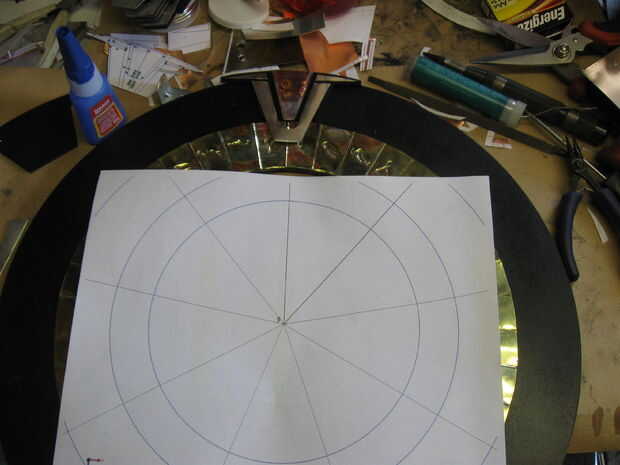 Cortar y pegar en el aro exterior de cosmético como se muestra usando una plantilla guía de nueve segmentos.