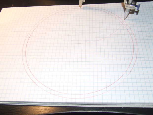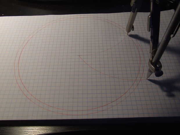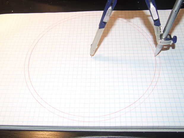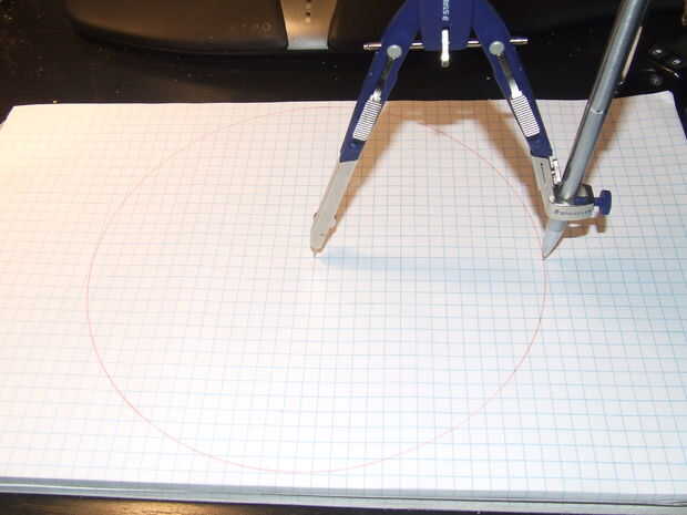 Ajustar el compás a un radio de 3,75 pulgadas y coloque la aguja en el centro del círculo.