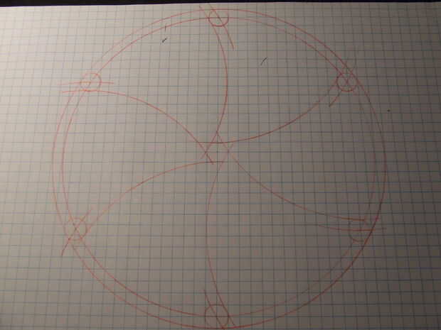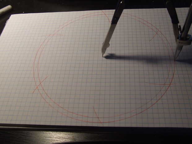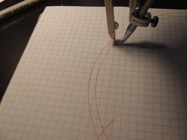 Establecer su brújula en radio de 3,75 pulgadas y coloque la aguja en el punto donde el arco cruza el círculo externo, no donde el círculo de media pulgada se reúne.
