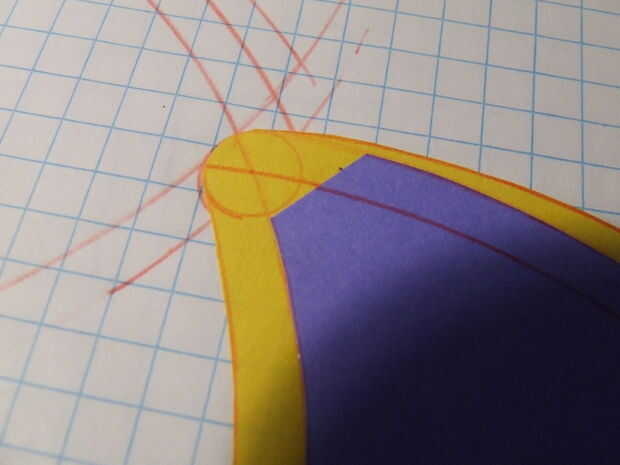 Establecer su compás a un radio de 6,75 pulgadas y dibujar un arco largo. Utilizando el mismo punto de giro dibuja otra en radio de 7.25. luego una tercera en radio 7.