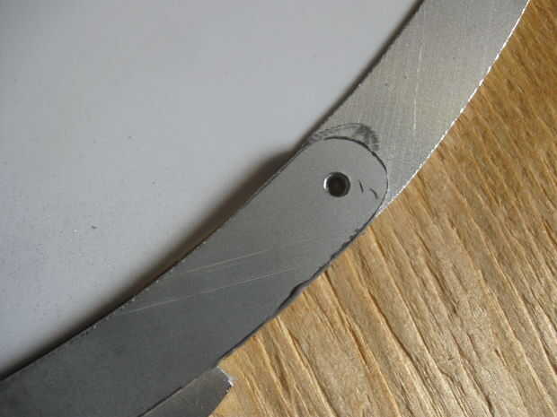 El anillo de soporte de la hoja interior en 2 piezas, así que me uní a ellos luego cubrieron la articulación con un pedazo de chatarra de aluminio.