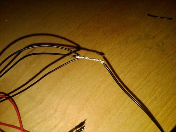 Luego tomar los 3 cables negros, tuerza los extremos y envolver con el hilo negro alrededor de los extremos torcidos. Esta soldadura también. Todo lo debe saber conectarse con el cierre de la batería.