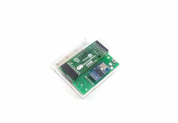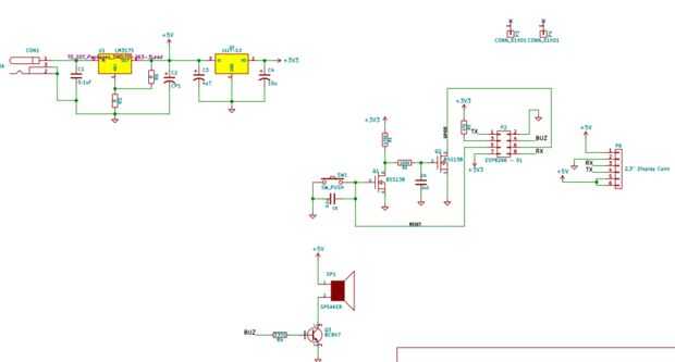Ahora que la pantalla está arriba y funcionando y mostrar mensajes en el puerto serie. Es hora de traer en el módulo de Wifi ESP8266 glorioso. Hicimos un pequeño PCB para el ESP-01 para que se ajuste apropiadamente a continuación el controlador. También tiene 1A circuito de alimentación para encender la pantalla.