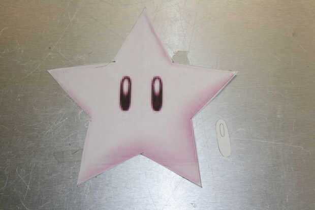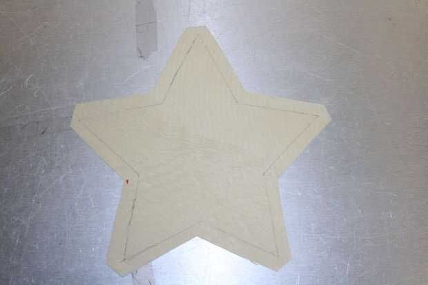 - Trace el patrón en la parte posterior del vinilo amarillo con un lápiz. Agregar una 1/2" de la frontera alrededor de todo el camino para margen de costura.
