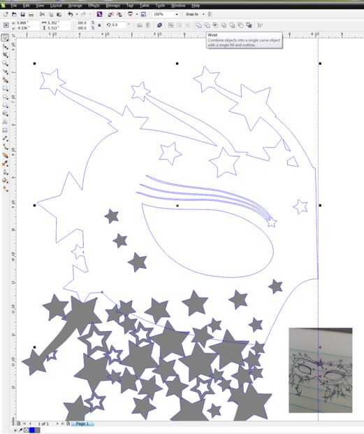 Una vez que estés satisfecho, puedes empezar a "soldar" las formas juntos. Esto conectará las estrellas donde se superponen.