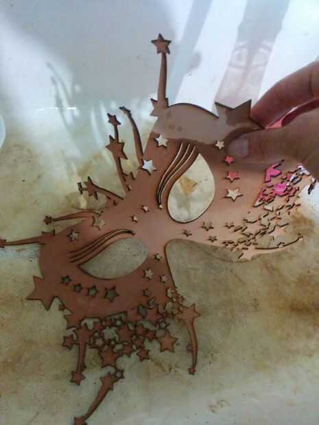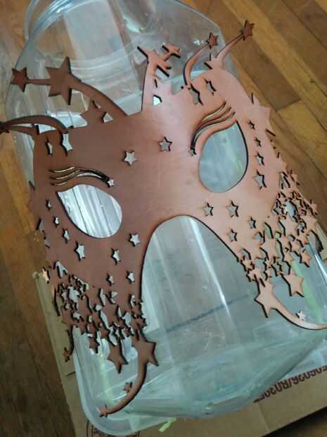 Blot apagado cualquier exceso de agua y verá cómo puede utilizar sus dedos para moldear el cuero un poco más. Sólo quería una curva leve en la frente por lo que puso en un frasco y con la mano rizado las estrellas fugaces.
