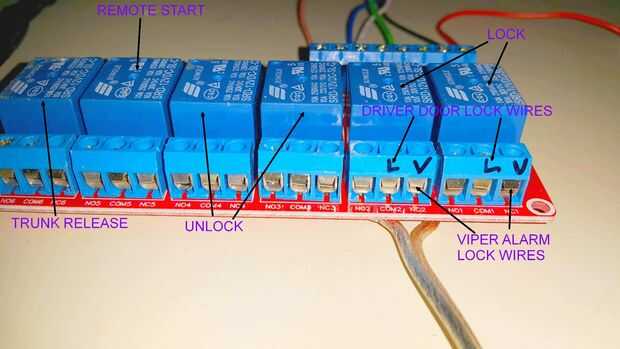 El arranque a control remoto es sólo un contacto normalmente abierto que envía una señal de 0V a un alambre en el Viper 791xv para iniciar o detener el motor. El baúl alambré el último relé como un proyecto de mejora futura.
