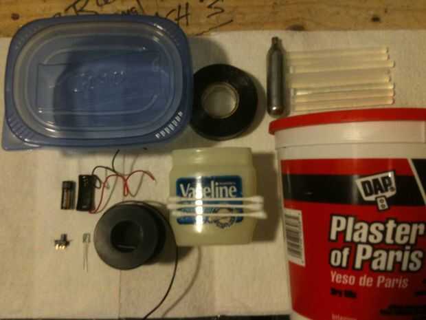 YESO de París se mezclan con agua y vierta en el recipiente de tupperware. Este será tu molde para verter pegamento caliente en.