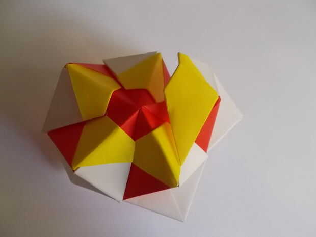 Aprende a hacer origami modular kusudama flor y bola de instrucciones.Lo que usted necesita:Para la flor:-5 documentos con tamaño 9 cm x 9 cm-pegamentoPara la bola:-60 documentos con tamaño 9 cm x 9 cm o 12 flores kusudama-pegamentoPaso 1: Ver las in
