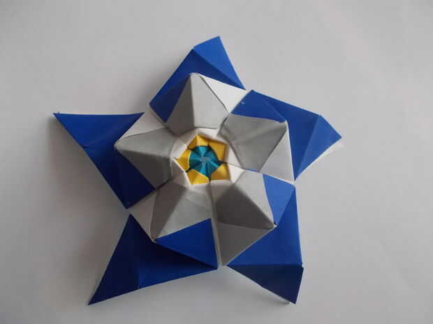 Repita los pasos anteriores para formar y conectar ambas capas de un Staryu con la combinación de colores brillantes Staryu (gris con piedra central de azul en un círculo de oro). Aquí está una lista de los papeles de colores que vas a necesitar: