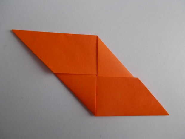 1. Doblar el cuadrado por la mitad. Luego se despliegan.