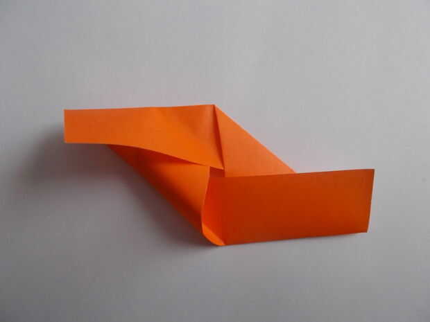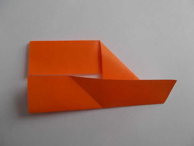 7. Toma la esquina inferior izquierda y meta en la aleta superior del rectángulo.